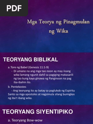 Teorya Ng Pinagmulan Ng Wika Pdf