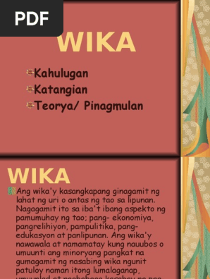Tore ng Babel Batay sa istorya ng Bibliya iisa lang ang wika noong unang panahon kayat walang suliranin sa pakikipagtalastasan ang tao. Kahulugan Katangian Teorya Pinagmulan WIKA. Ang wikay nawawala at namamatay kung nauubos o umuunti ang minoryang pangkat na gumagamit ng nasabing wika ngunit patuloy naman itong lumalaganap umuunlad at nagbabago kasabay ng pag-unlad ng mayoryang.