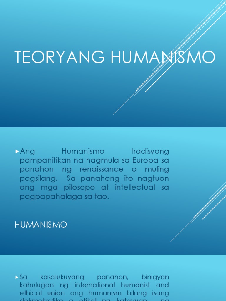 Ano nga ba ang Teoryang Humanismo. Ang teoryang feminismo ay tumutukoy sa prinsipiyo o paniniwalang dapat maging pantay ang mga babae at mga lalaki sa pagtamasa ng mga karapatang sosyal ekonomiko at politikal. Ang Humanismo ay tradisyong pampanitikan na nagmula sa Europa sa panahon ng Renaissance o Muling Pagsilang.