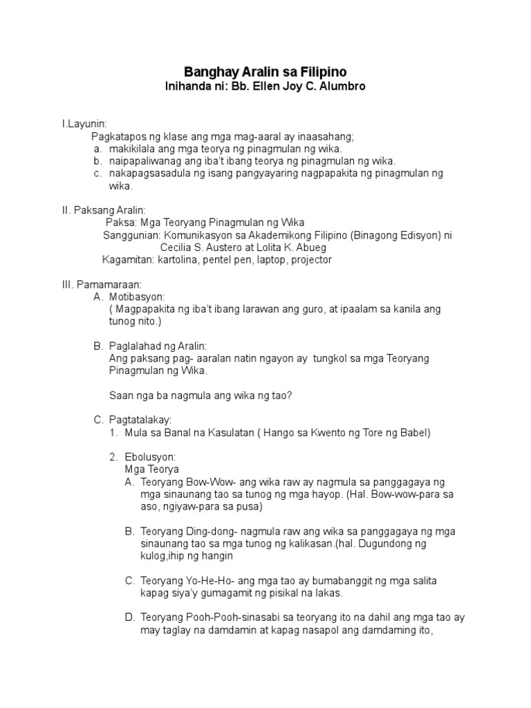 Banghay aralin sa filipino tungkol sa teorya ng wika. Banghay Aralin sa Filipino IV. Detalyadong Banghay-Aralin sa FILIPINO V I. Banghay Aralin sa Filipino 4 tungkol sa Simuno at Panaguri at ang mga gamit nito sa pangungusap.