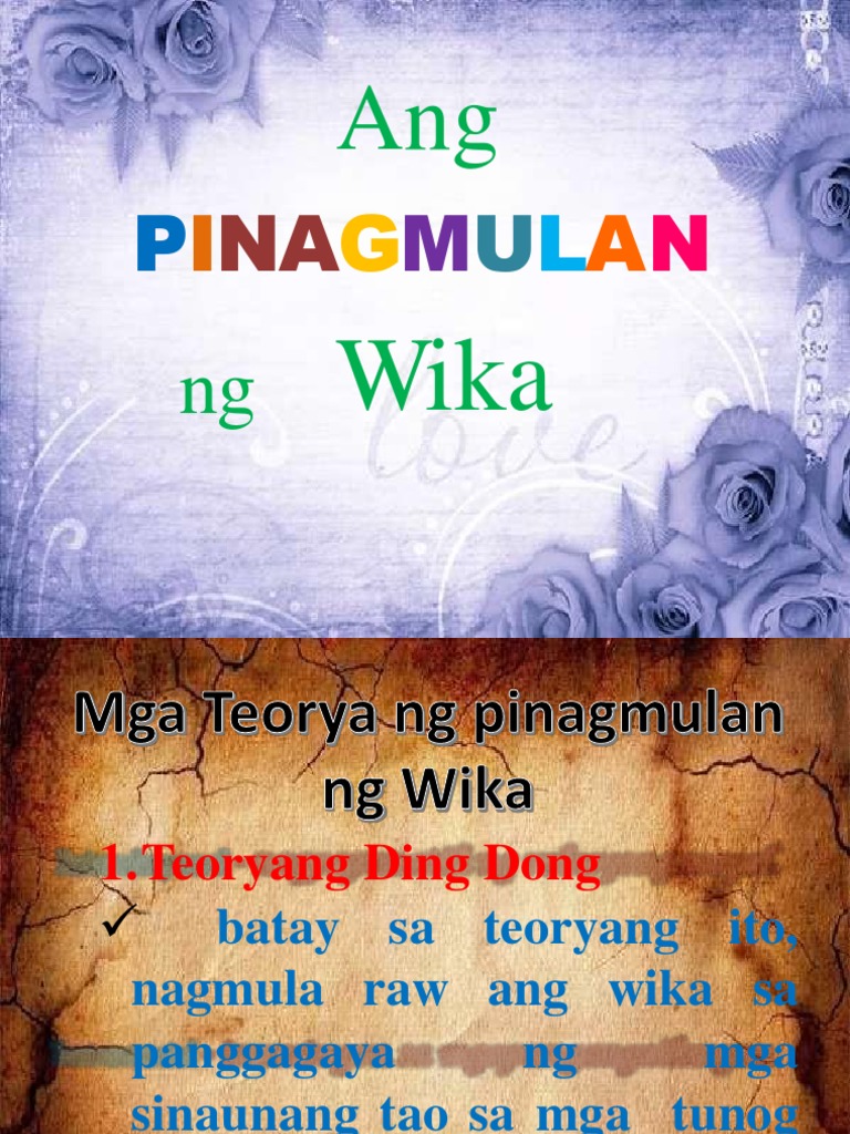 Maraming haka-haka tungkol sa pinagmulan ng wika. Flag for inappropriate content Download now of 6 Ang PINAGMULAN ng Wika f1Teoryang Ding Dong batay sa teoryang ito nagmula raw ang wika sa panggagaya ng mga sinaunang tao sa.